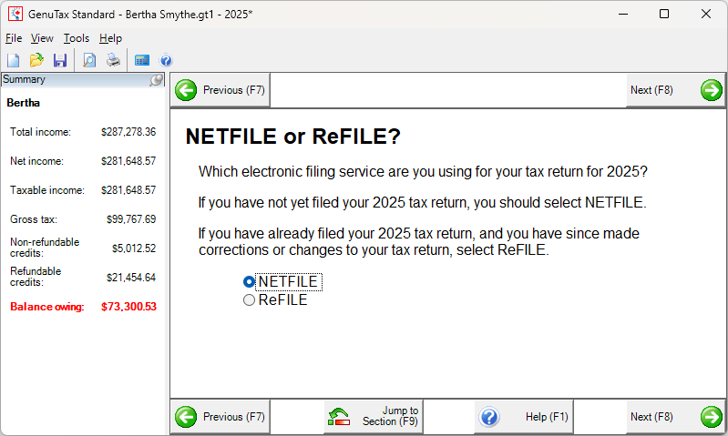 GenuTax Standard - Program Help - Using NETFILE to Send Your Tax Return