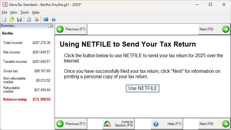 GenuTax Standard - Program Help - Using NETFILE to Send Your Tax Return