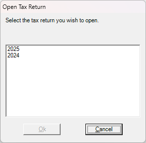 If you are opening a tax return within a taxpayer file that is already open, you must indicate which tax return you would like to open.